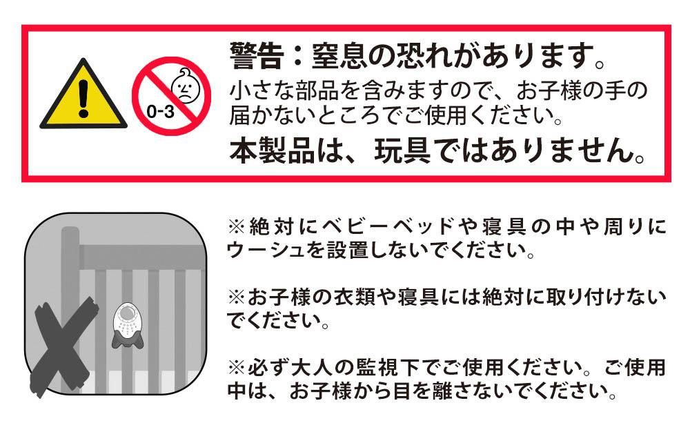 ※絶対にベビーベッドや寝具の中や周りに設置しないでください。